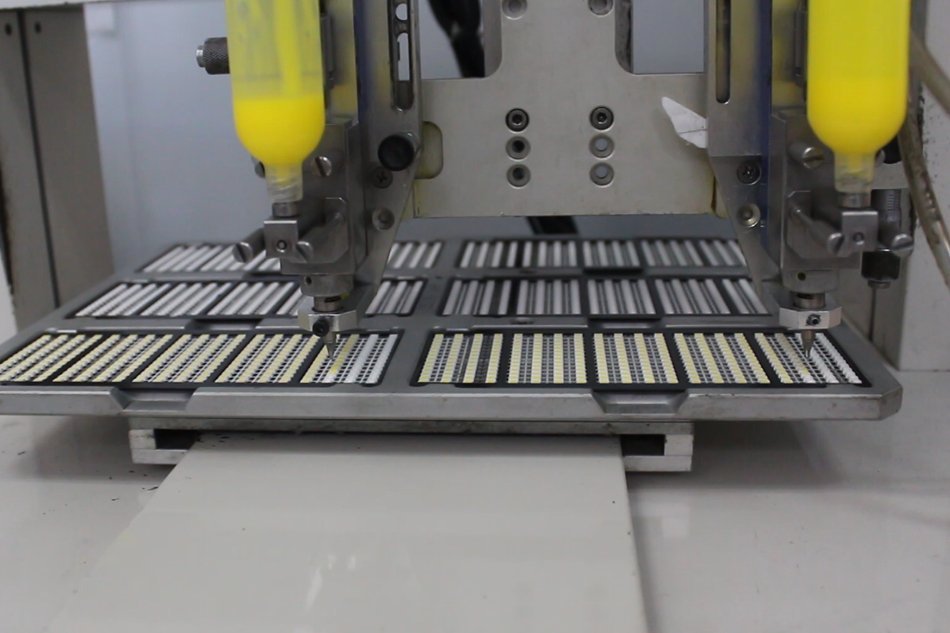 3.點(diǎn)膠:焊線完成的TOP支架系列,通過配制膠水,白光顏色需要配制熒光粉,攪拌膠水和配粉的融合,將調(diào)配好的膠水滴入TOP杯型支架中心位置,覆蓋在LED發(fā)光芯片跟引線上面,然后進(jìn)行烘烤固化膠水,不同膠水與配粉的結(jié)合,可分為透明膠體,霧狀膠體,以及配粉白光膠體和調(diào)粉顏色膠體,四款膠體對(duì)TOP系列LED的發(fā)光成品顏色各不相同。