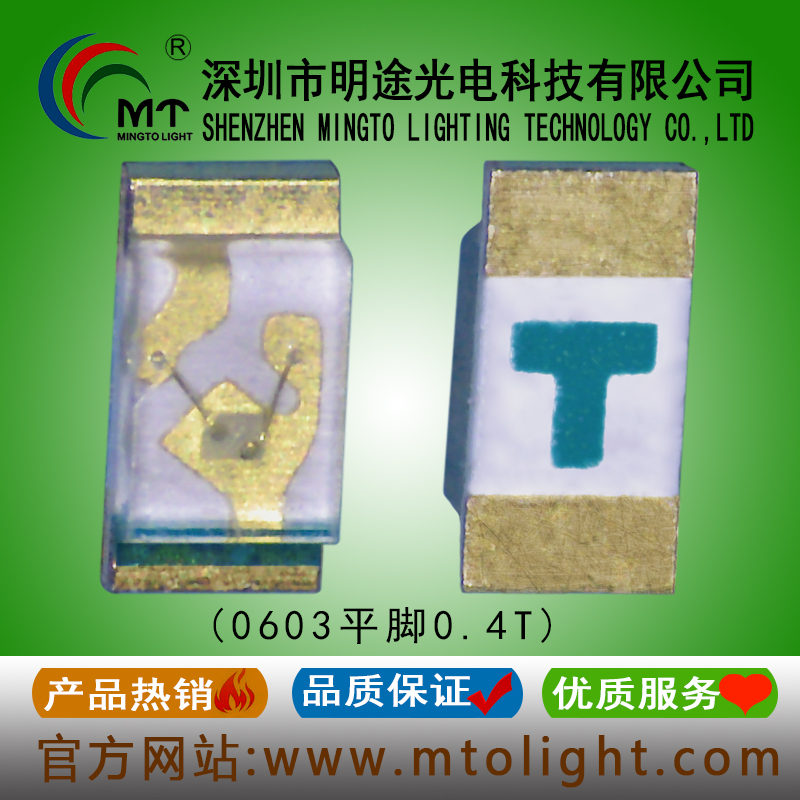 0603平角0.4MM厚度紅、綠、藍(lán)、黃、白單色光LED燈珠