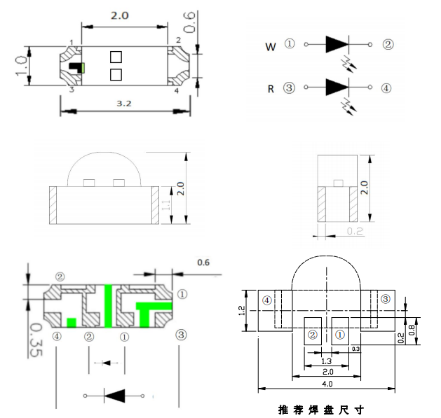 本系列產(chǎn)品體積3.2*1.0 厚度2.0mm 色彩多樣,有紅、橙、黃、黃綠、翠綠、藍、白、粉紅、紫色、雙色、七彩、側面發(fā)光燈珠,適用于無鉛回流焊,環(huán)保產(chǎn)品,符合歐盟公布的ROSH指令要求,本系列產(chǎn)品廣泛應用于新能源汽車行業(yè)、小家電數(shù)碼管、智能家居、機頂盒行業(yè)、運動戶外產(chǎn)品、藍牙數(shù)碼產(chǎn)品、信號指示、汽車儀表照明、燈飾照明、手機背光和LCD能源等領域、等。 側面發(fā)光1204紅白雙色 MT-L1204QRQWD