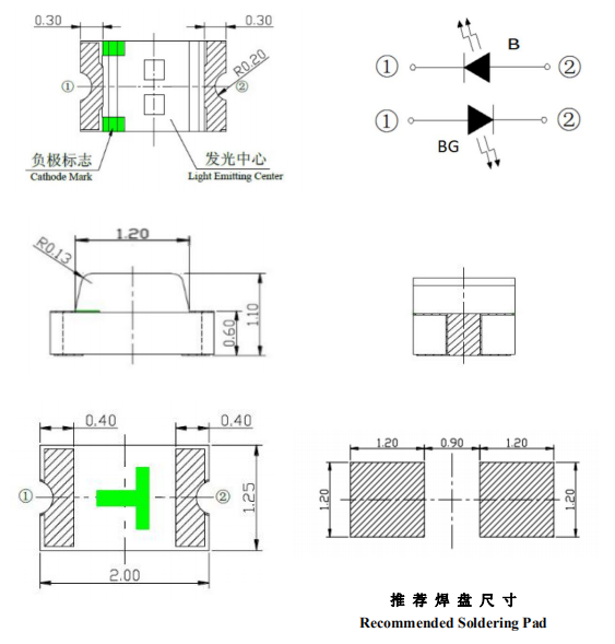 本系列產(chǎn)品體積2.0*1.2*1.1mm 色彩多樣,有無極紅藍雙色,無極紅翠綠雙色,無極紅黃雙色,無極藍翠綠雙色,無極紅黃綠雙色,還可以定制加工,無極雙紅雙色,無極雙藍雙色,無極雙翠綠雙色, 無極雙黃雙色,無極雙黃綠雙色、等多種正面發(fā)光的LED,適用于無鉛回流焊,環(huán)保產(chǎn)品,符合歐盟公布的ROSH指令要求本系列產(chǎn)品主要用于信號指示及照明,如家電指示類、汽車儀表等0805無極藍翠綠雙色LED燈珠 MT-W0805QBQBGC
