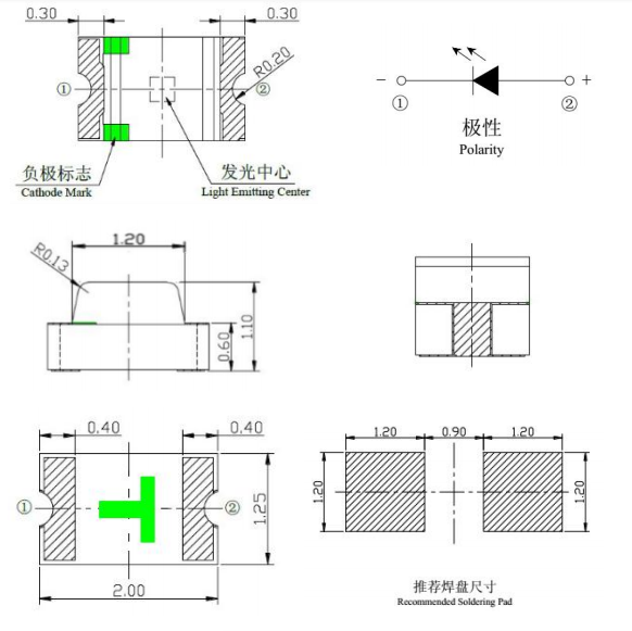 本系列產(chǎn)品體積2.0*1.25 厚度有0.8mm、1.1mm 色彩多樣,有紅、橙、黃、黃綠、翠綠、藍(lán)、白、粉紅、紫色、雙色、七彩、側(cè)面發(fā)光燈珠適用于無(wú)鉛回流焊,環(huán)保產(chǎn)品,符合歐盟公布的ROSH指令要求本系列產(chǎn)品主要用于信號(hào)指示及照明,如家電指示類(lèi)、汽車(chē)儀表等 0805加齊納翠綠LED燈珠 MT-L0805QBGC